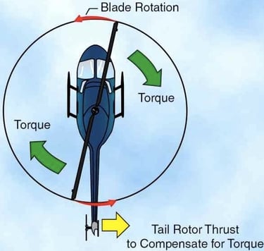 Main rotor creates torque: As the helicopter's engine spins the main rotor to generate lift, it imparts a massive amount of angular momentum to the blades.
