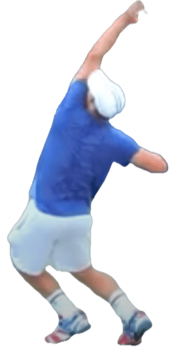The serve begins from the ground up. By bending your knees to prepare for the jump, creating the pushing force against the ground and weight. To be clear in mind, jumping by legs is an active action which is different from the rotated torso ( like the compressed spring) that will turn back naturally ( or say inactive) around the spine if you do not hold it. As you initiate the upward motion of the serve, your legs drive explosively upward and create the beginning force upward from pushing ground. This vertical pushing ground force lifts your body and helps initiate the movement of the dynamic skeleton.